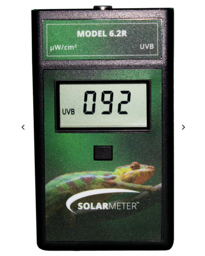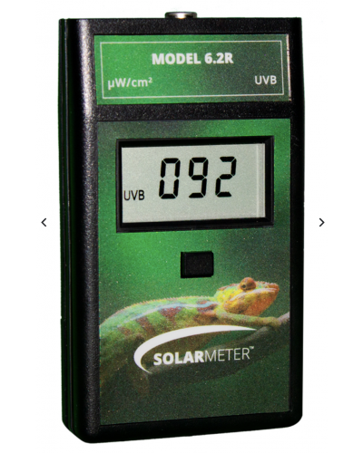 Der 2021 erneuerte UV-Solarmeter 6.2 Reptile bieten wir hier zum ersten Mal an. Er liefert zusammen mit seinem Bruder dem UV-Solarmeter 6.5 Reptile und dem kostenlos mitgelieferten Beleuchtungs-Ratgeber von Oliver Fischer eine gute Ausgangslage, um seine Beleuchtung für Reptilien richtig einzusetzen und sich ein Bild von der Lebensdauer und Einsatz der verschiedenen Lampen zu machen. Das klassische UV-B Messgerät 6.2 war früher das von Reptilienhaltern und Zoos früher am häufigsten verwendete Model um die Abnahme und Wirksamkeit von UV-Lampen abzuschätzen. Es fokussiert mit seiner Absorptionskurve teilweise auch auf jenen Bereich, der für die Synthese der Vitamin D3-Vorstufe in der Reptilienhaut entscheidend ist. Noch genauer wird das 6.2 bei Verwendung zusammen mit dem 6.5. Das Gerät wird einfach mit der Oberseite unter die Beleuchtung gehalten und dabei der kleine Knopf an der Frontseite gedrückt. Fortlaufend erscheinen die aktuell gemessenen UV-B Werte in der Einheit uW/cm2.