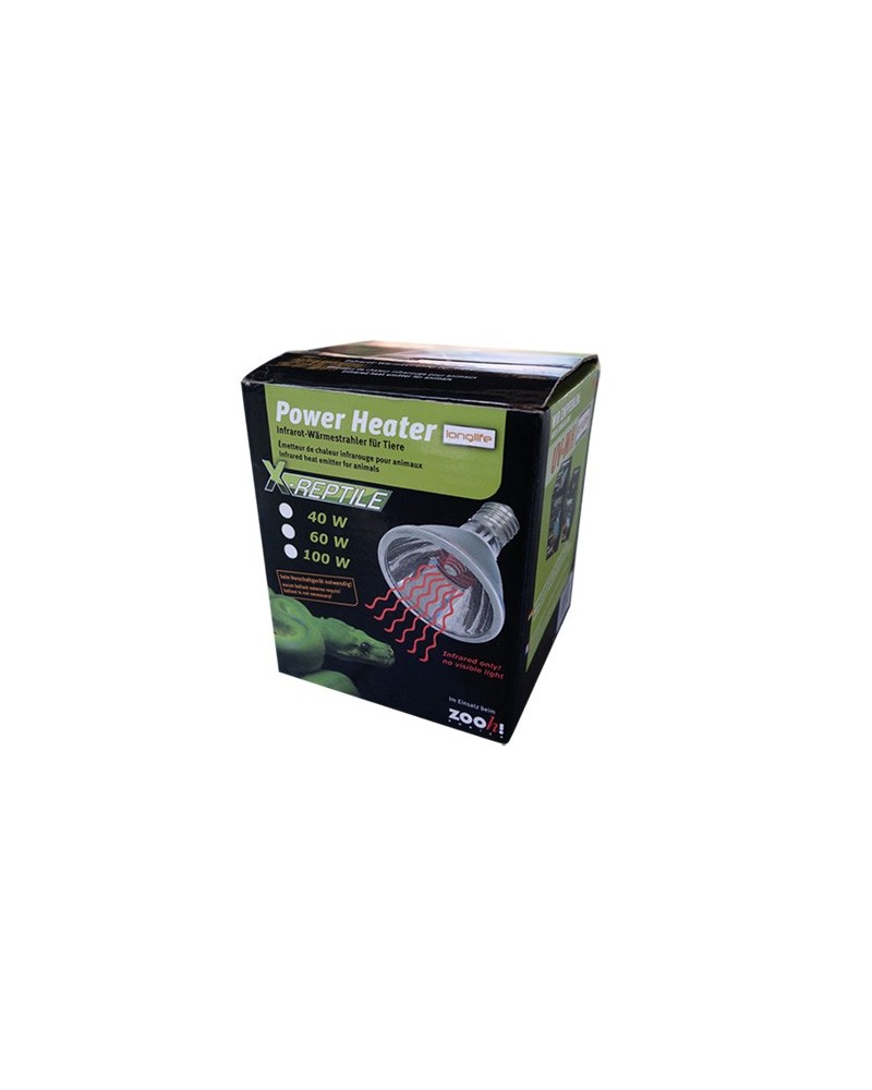 Der Power Heater ersetzt umständliche Keramikheizer, denn er liefert Wärme deutlich effizienter und sicherer als andere Wärmelampen. Er erzeugt keinerlei sichtbares Licht und ist somit für Tag und Nacht geeignet! Betrieb in normaler E27-Keramikfassung! Ce émetteur forunit la chaleur d'une manière plus fiable et efficace que des autres lampes chauffantes! Il ne produit pas de lumière, seulement des infrarouges - approprié pour le jour et la nuit! Ballast incorporé - culot E27!
